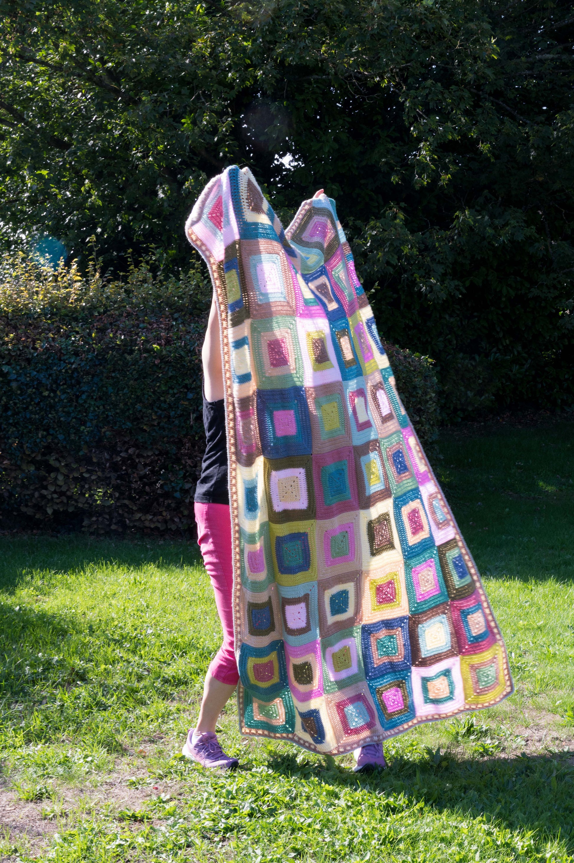This blanket design stormed into my head fully formed. From nowhere! How does that happen? I started it on Sept 3rd and had it finished by the 19th! I was, and still am, obsessed with these bold squares in lovely muted pastels - it has a 50s Miami vibe so I've named it South Beach. Sunset pinks, sea blues, sandy neutrals and even palm tree green - welcome to Florida!